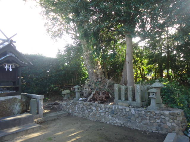 祭神・素盞嗚命 鎮座地・ミダ山の麓 社殿なく、神木を依代として祀る。